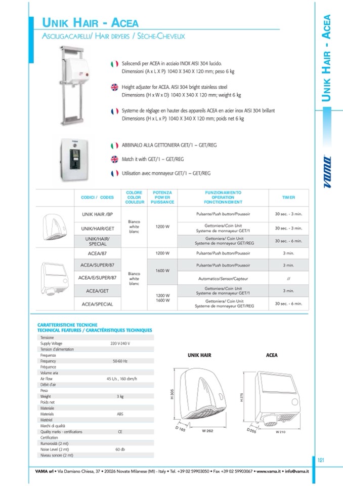 VAMA srl • Via Damiano Chiesa, 37 • 20026 Novate Milanese (MI) - Italy • Tel. +39 02 59903050 • Fax +39 02 59903067 • www.vama.it • info@vama.it