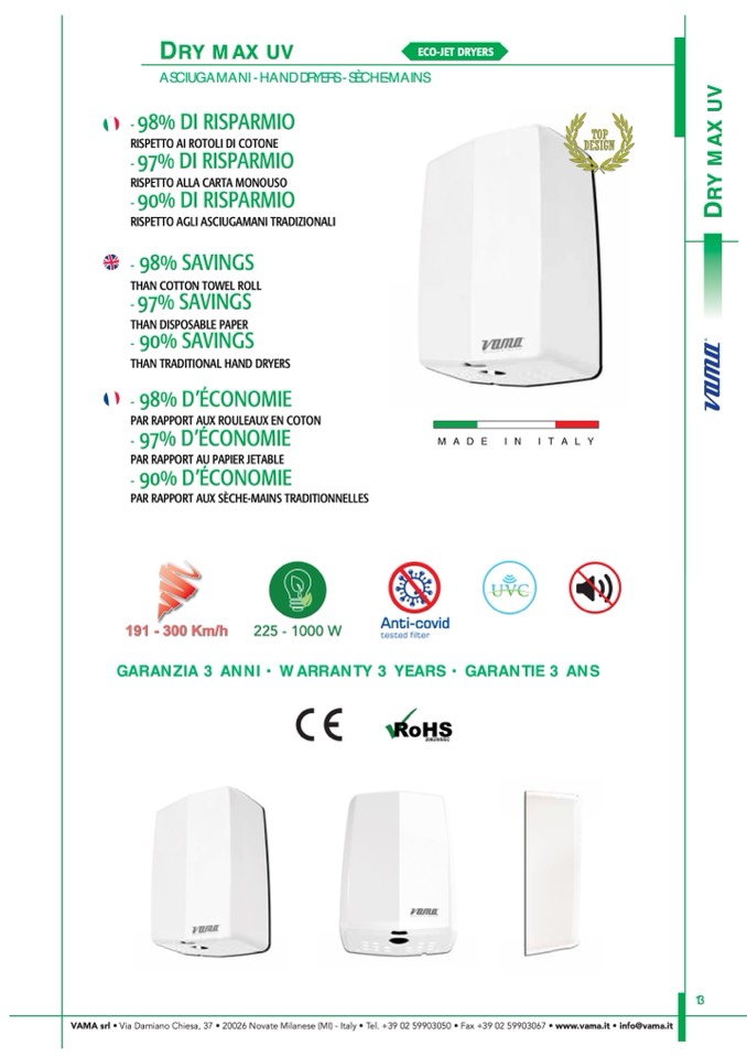 VAMA srl • Via Damiano Chiesa, 37 • 20026 Novate Milanese (MI) - Italy • Tel. +39 02 59903050 • Fax +39 02 59903067 • www.vama.it • info@vama.it