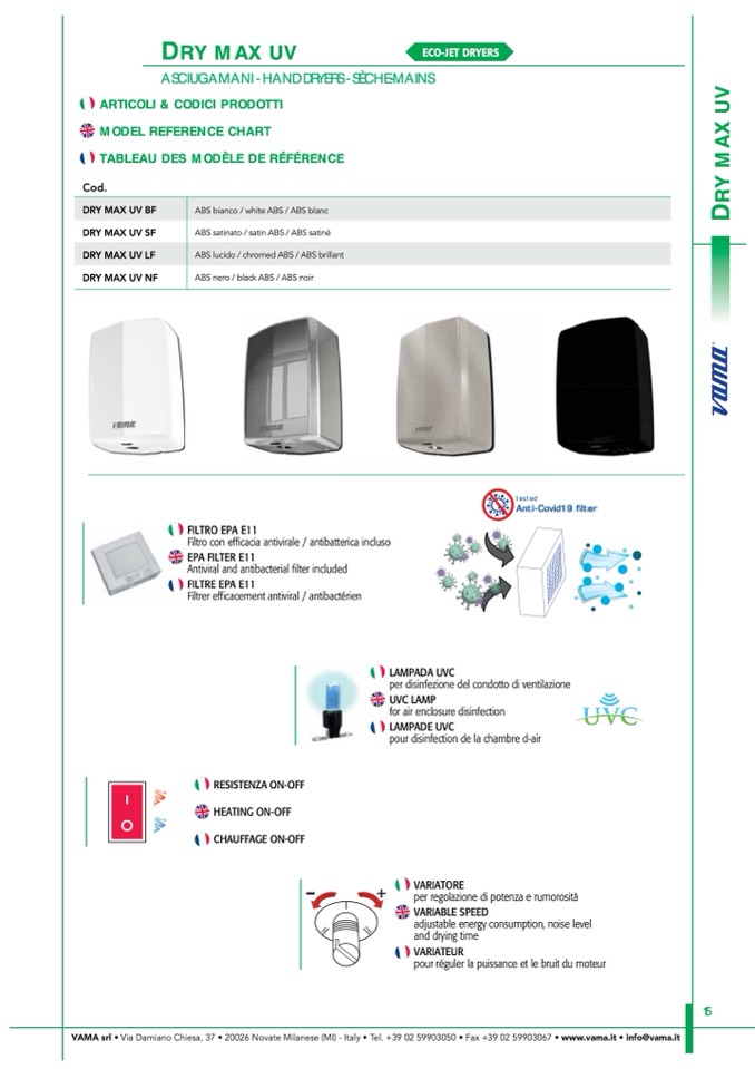 VAMA srl • Via Damiano Chiesa, 37 • 20026 Novate Milanese (MI) - Italy • Tel. +39 02 59903050 • Fax +39 02 59903067 • www.vama.it • info@vama.it