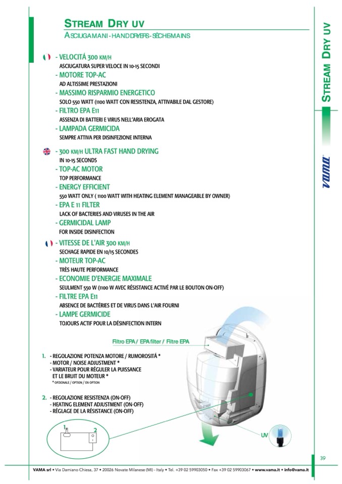 VAMA srl • Via Damiano Chiesa, 37 • 20026 Novate Milanese (MI) - Italy • Tel. +39 02 59903050 • Fax +39 02 59903067 • www.vama.it • info@vama.it