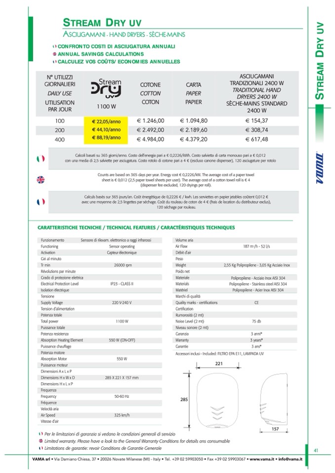 VAMA srl • Via Damiano Chiesa, 37 • 20026 Novate Milanese (MI) - Italy • Tel. +39 02 59903050 • Fax +39 02 59903067 • www.vama.it • info@vama.it