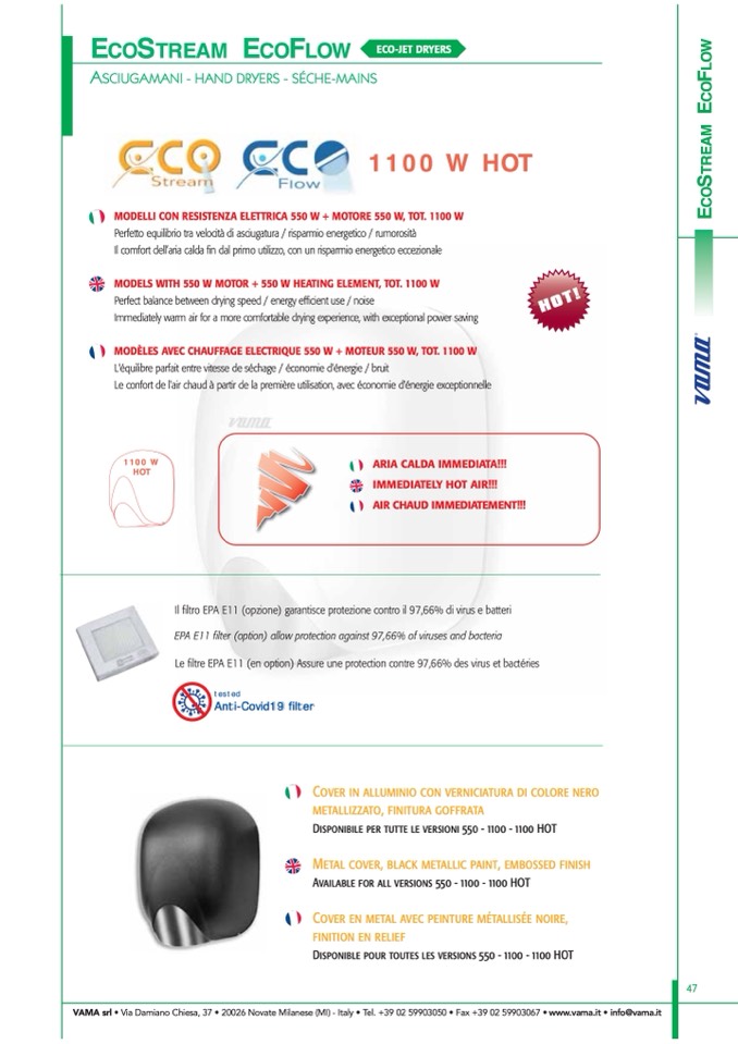 VAMA srl • Via Damiano Chiesa, 37 • 20026 Novate Milanese (MI) - Italy • Tel. +39 02 59903050 • Fax +39 02 59903067 • www.vama.it • info@vama.it