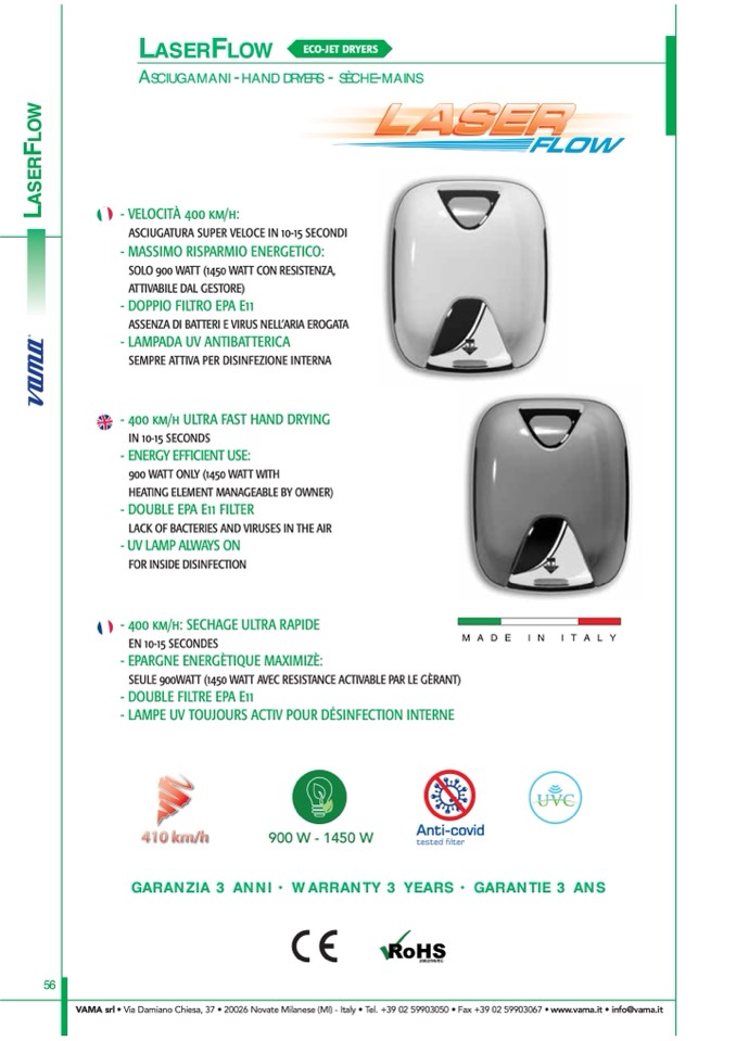 VAMA srl • Via Damiano Chiesa, 37 • 20026 Novate Milanese (MI) - Italy • Tel. +39 02 59903050 • Fax +39 02 59903067 • www.vama.it • info@vama.it