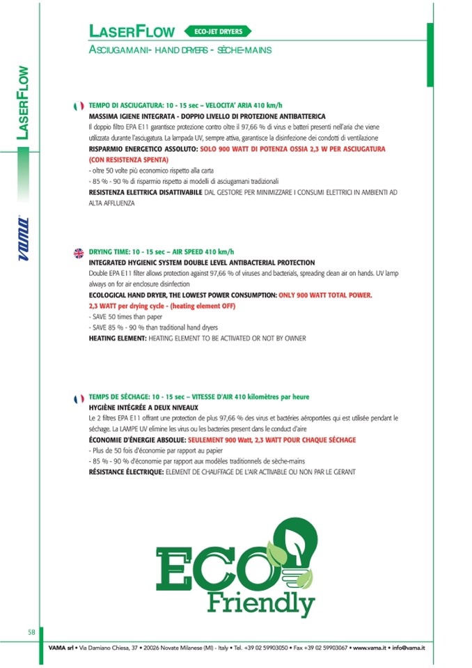 ECOLOGICAL HAND DRYER, THE LOWEST POWER CONSUMPTION: ONLY 900 WATT TOTAL POWER.