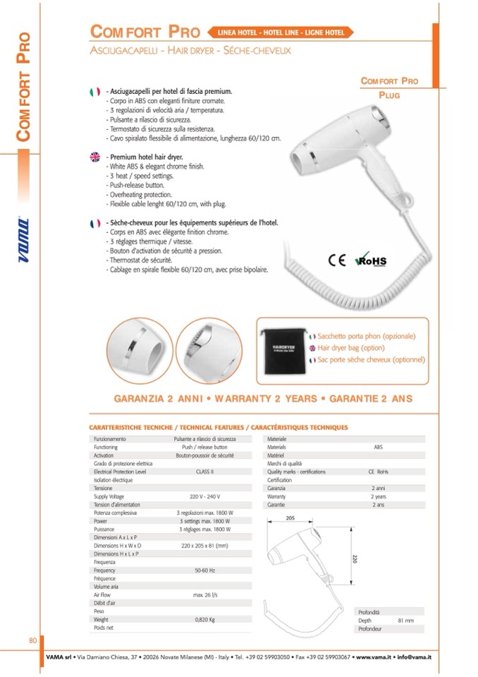 VAMA srl • Via Damiano Chiesa, 37 • 20026 Novate Milanese (MI) - Italy • Tel. +39 02 59903050 • Fax +39 02 59903067 • www.vama.it • info@vama.it