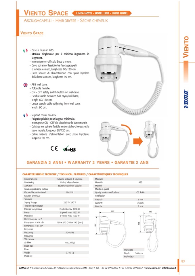 VAMA srl • Via Damiano Chiesa, 37 • 20026 Novate Milanese (MI) - Italy • Tel. +39 02 59903050 • Fax +39 02 59903067 • www.vama.it • info@vama.it
