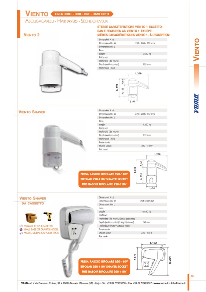 VAMA srl • Via Damiano Chiesa, 37 • 20026 Novate Milanese (MI) - Italy • Tel. +39 02 59903050 • Fax +39 02 59903067 • www.vama.it • info@vama.it