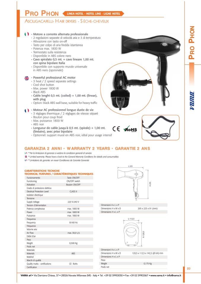 GARANZIA 2 ANNI • WARRANTY 2 YEARS • GARANTIE 2 ANS
