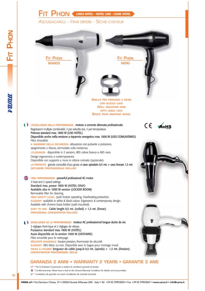 GARANZIA 2 ANNI • WARRANTY 2 YEARS • GARANTIE 2 ANS