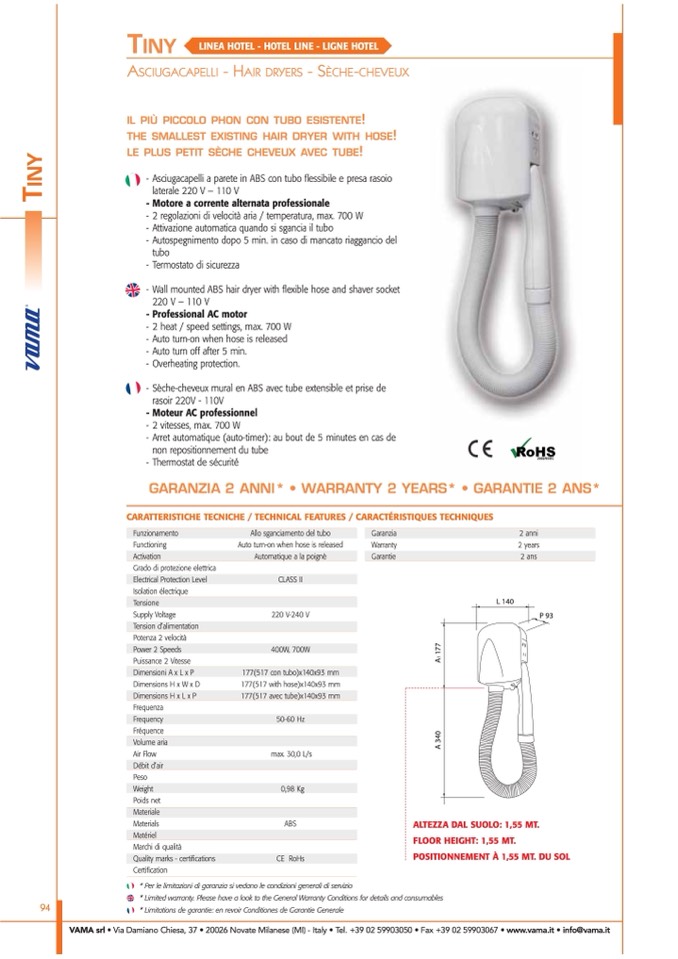 VAMA srl • Via Damiano Chiesa, 37 • 20026 Novate Milanese (MI) - Italy • Tel. +39 02 59903050 • Fax +39 02 59903067 • www.vama.it • info@vama.it