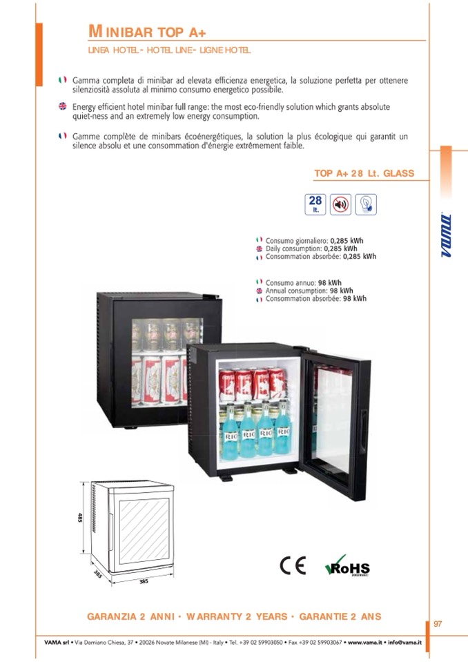 Energy efficient hotel minibar ful range: the most eco-friendly solution which grants absolute