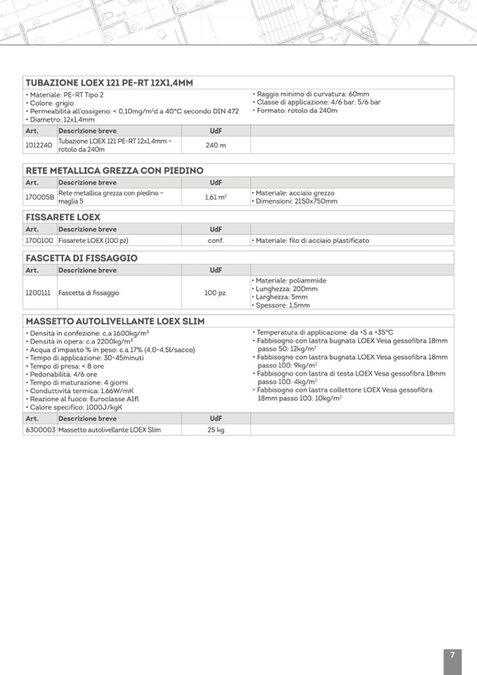 • Fabbisogno con lastra di testa LOEX Vesa gessofibra 18mm