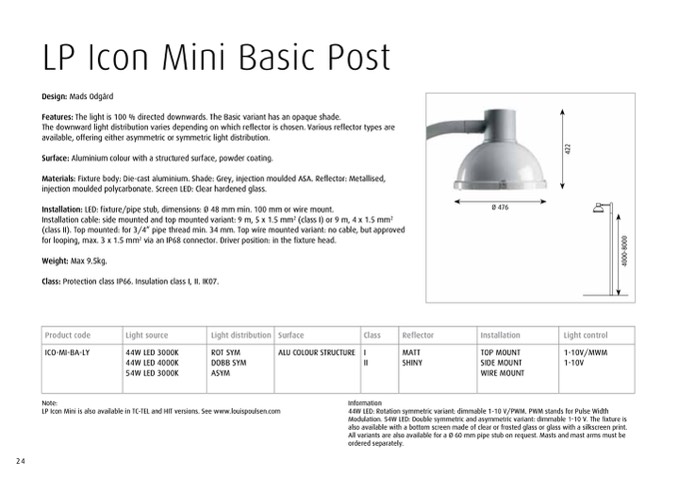 LP Icon Mini is also available in TC-TEL and HIT versions. See www.louispoulsen.com