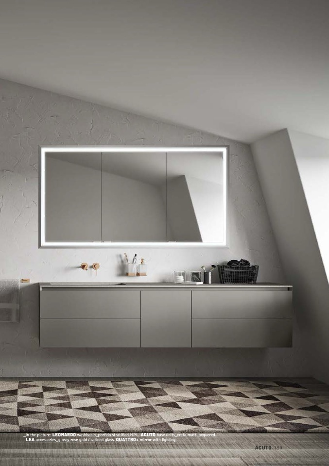LEA accessories_glossy rose gold / satined glass. QUATTRO+ mirror with lighting.