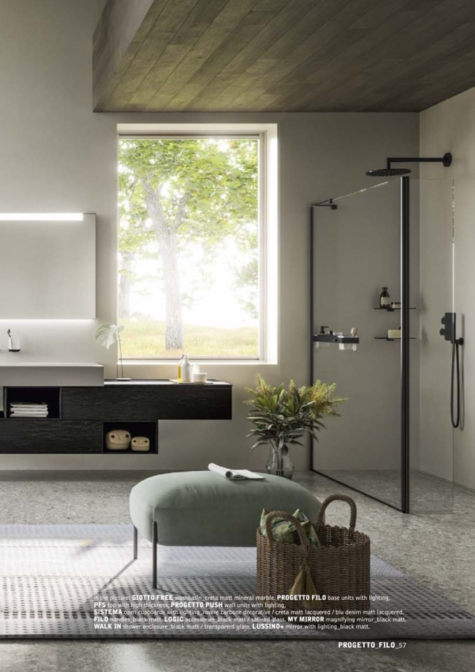 _in the picture: GIOTTO FREE washbasin_creta matt mineral marble. PROGETTO FILO base units with lighting,