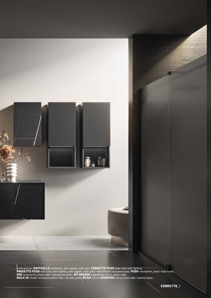 _in the picture: RAFFAELLO washbasin_nero agadez matt gres. CORRETTO PUSH base units with lighting,