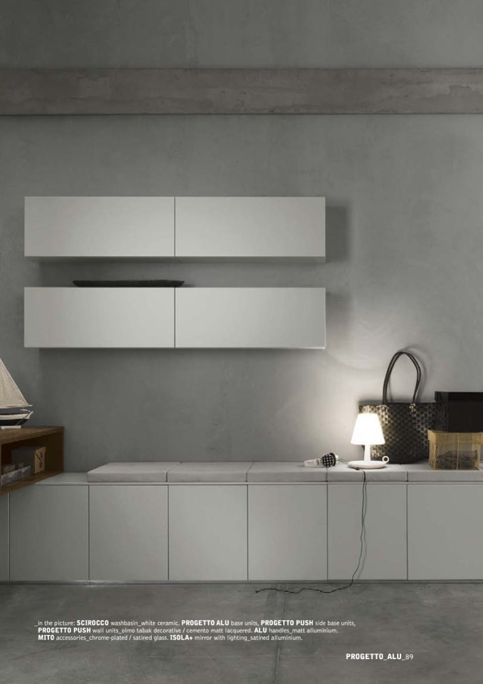 _in the picture: SCIROCCO washbasin_white ceramic. PROGETTO ALU base units, PROGETTO PUSH side base units,