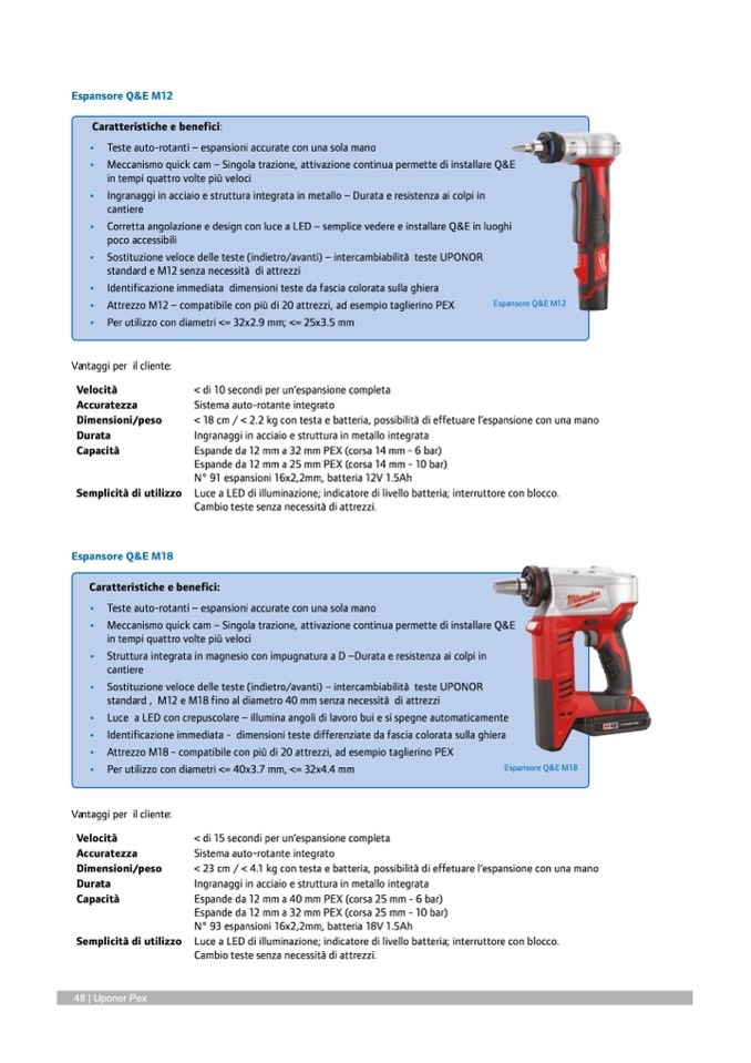 • Sostituzione veloce delle teste (indietro/avanti) – intercambiabilità teste UPONOR
