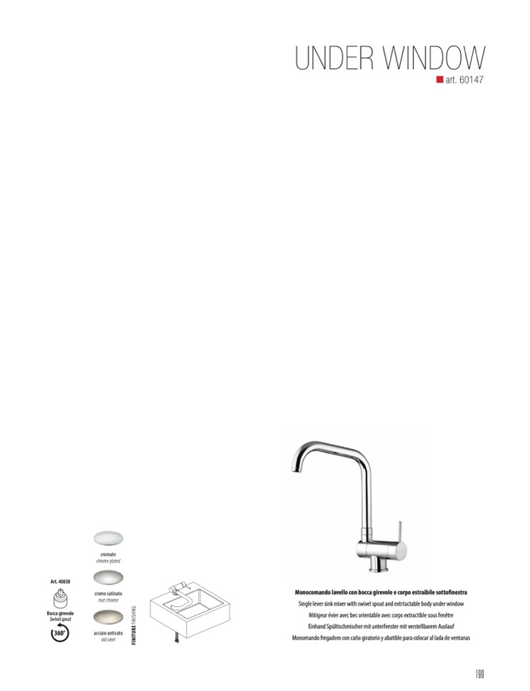 Monocomando lavello con bocca girevole e corpo estraibile sottofinestra