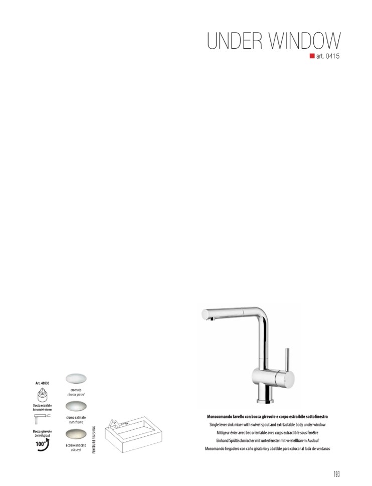 Monocomando lavello con bocca girevole e corpo estraibile sottofinestra