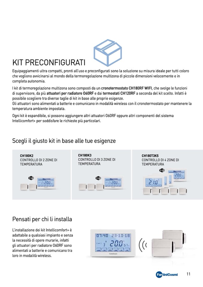 I kit di termoregolazione multizona sono composti da un cronotermostato CH180RF WIFI, che svolge le funzioni