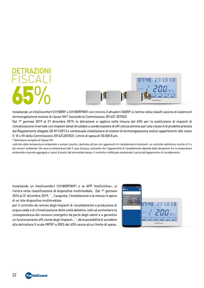Installando un Intellicomfort CH180RF o CH180RFWiFi con minimo 3 attuatori O60RF si rientra nella classifi cazione di sistema di
