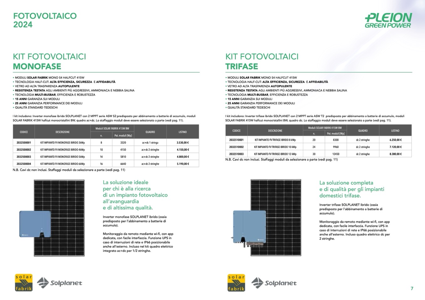 SOLAR FABRIK 415W halfcut monocristallini BW, quadro ac+dc. Lo staffaggio moduli deve essere selezionato a parte (vedi pag. 11).