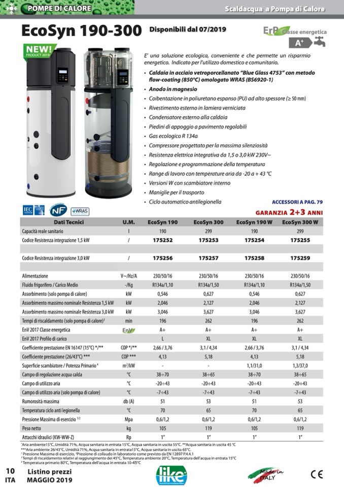 ***Aria ambiente 26/43°C, Umidità 71%, Acqua sanitaria in entrata15°C, Acqua sanitaria in uscita 65°C.