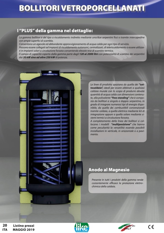 La gamma bollitori è del tipo a riscaldamento indiretto mediante uno/due serpentini