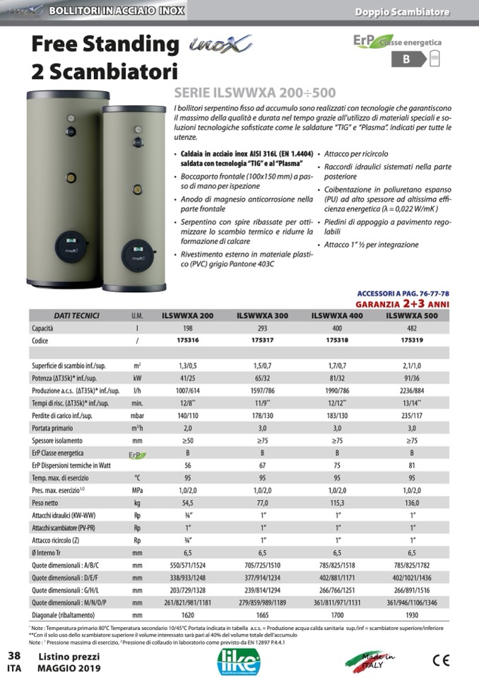 **Con il solo uso dello scambiatore superiore il volume interessato sarà pari al 40% del volume totale dell’accumulo