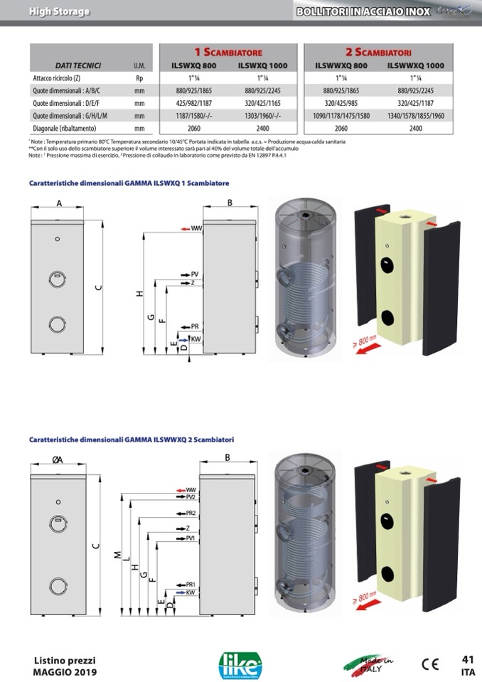 Caratteristiche dimensionali GAMMA ILSWXQ 1 Scambiatore