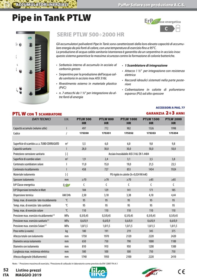 Pressione di collaudo in laboratorio come previsto da EN 12897 P.4.4.1