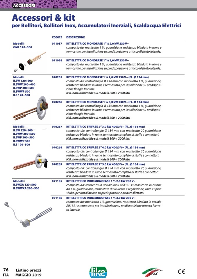 071185 KIT ELETTRICO INOX MONOFASE 1 1⁄2 2,0 kW 230 V~