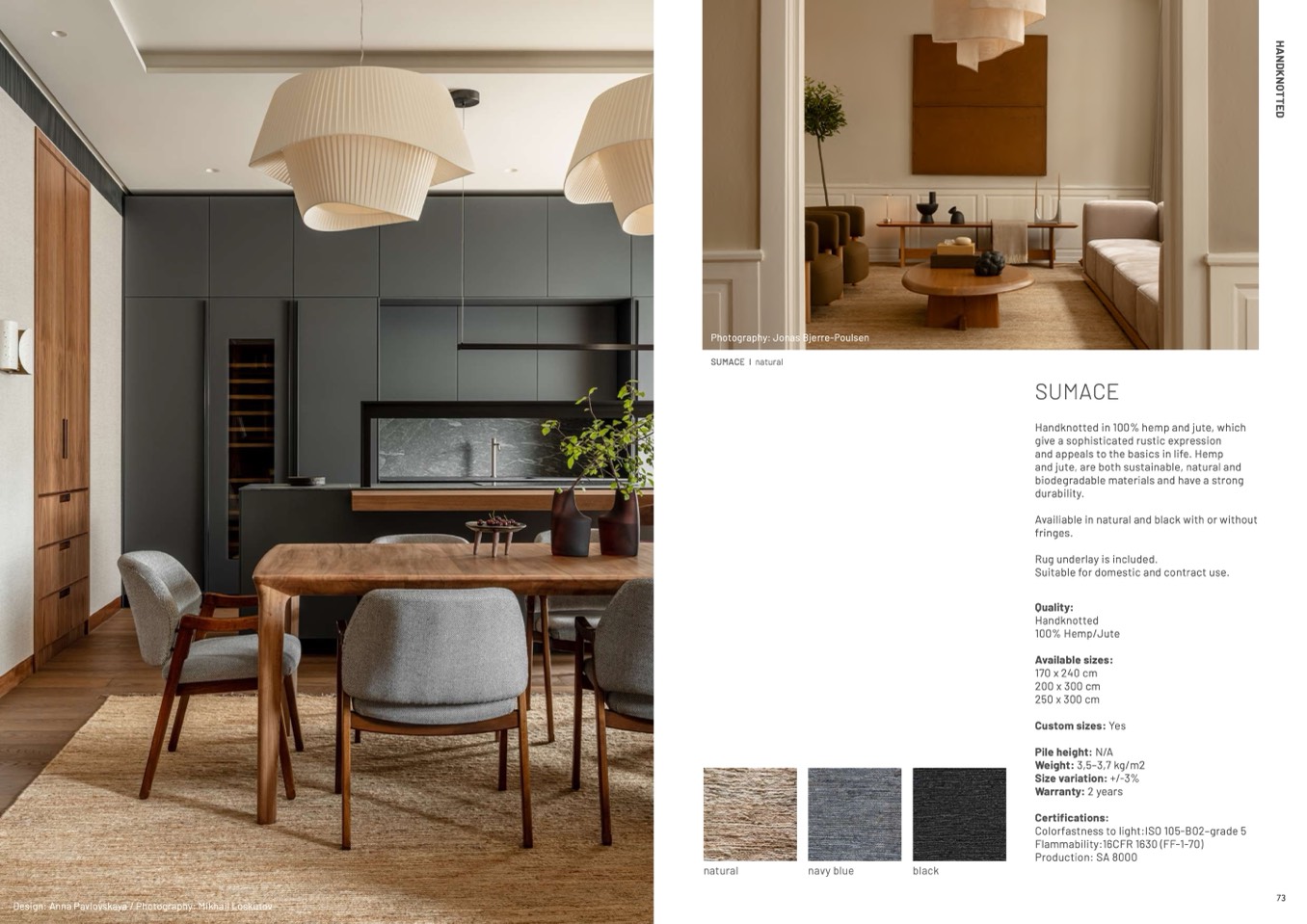 Handknotted in 100% hemp and jute, which