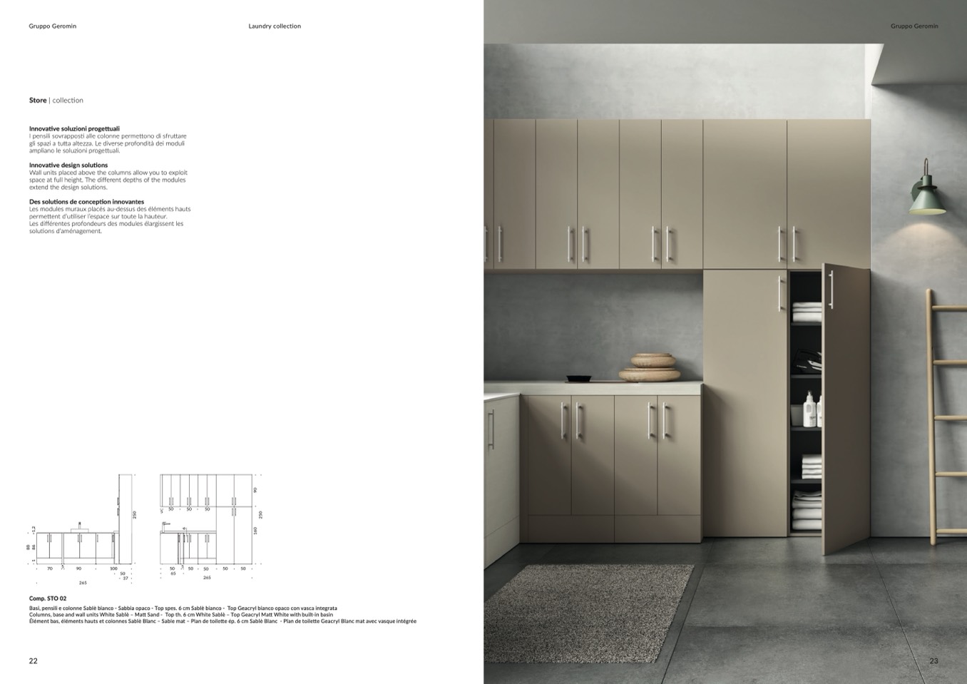 Columns, base and wall units White Sablè – Matt Sand - Top th. 6 cm White Sablè – Top Geacryl Matt White with built-in basin