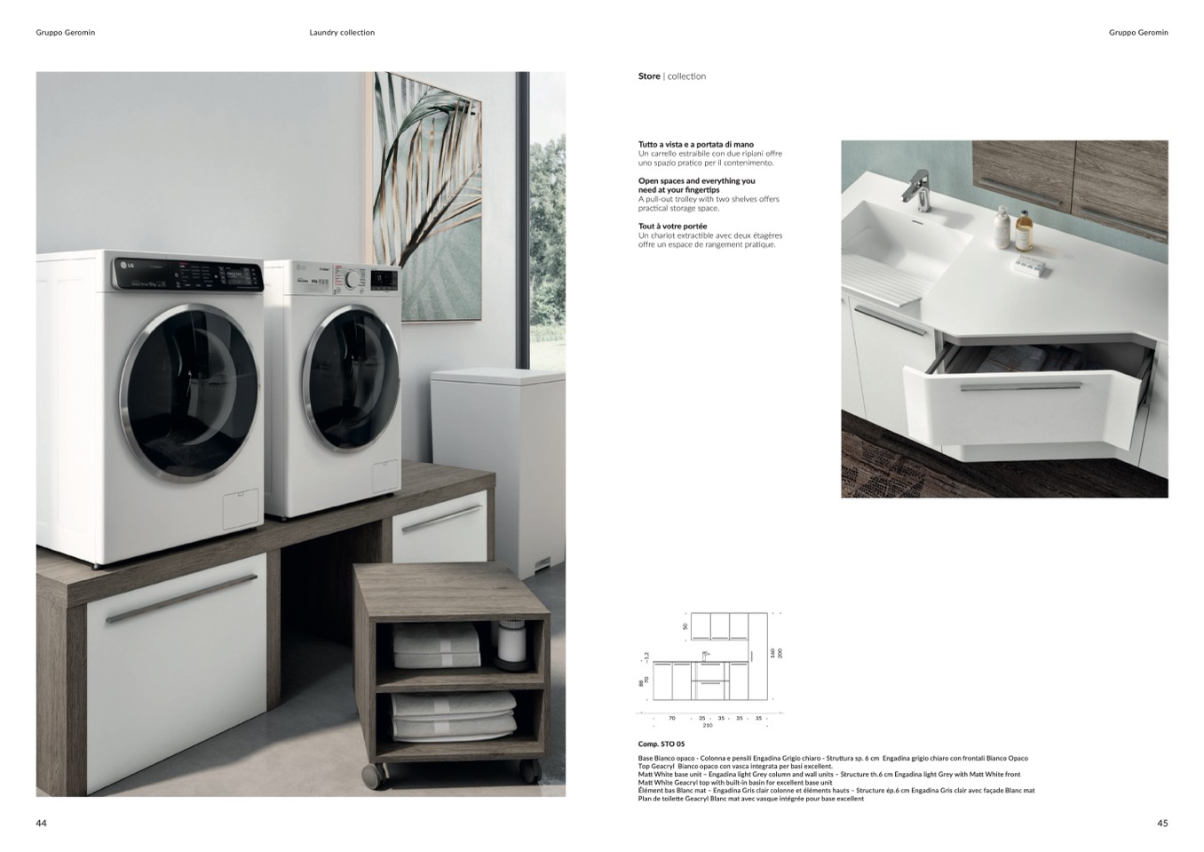 Matt White base unit – Engadina light Grey column and wall units – Structure th.6 cm Engadina light Grey with Matt White front