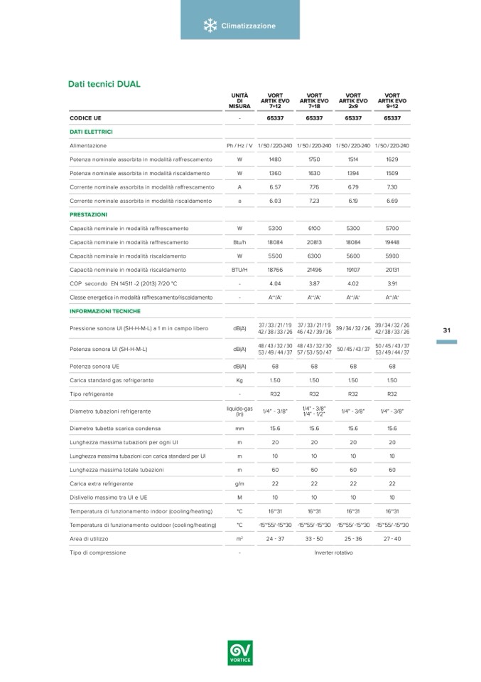 Classe energetica in modalità raffrescamento/riscaldamento