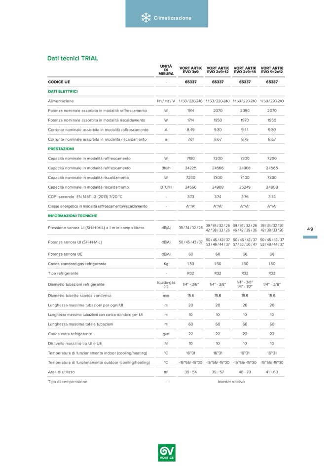COP secondo EN 14511 -2 (2013) 7/20 °C