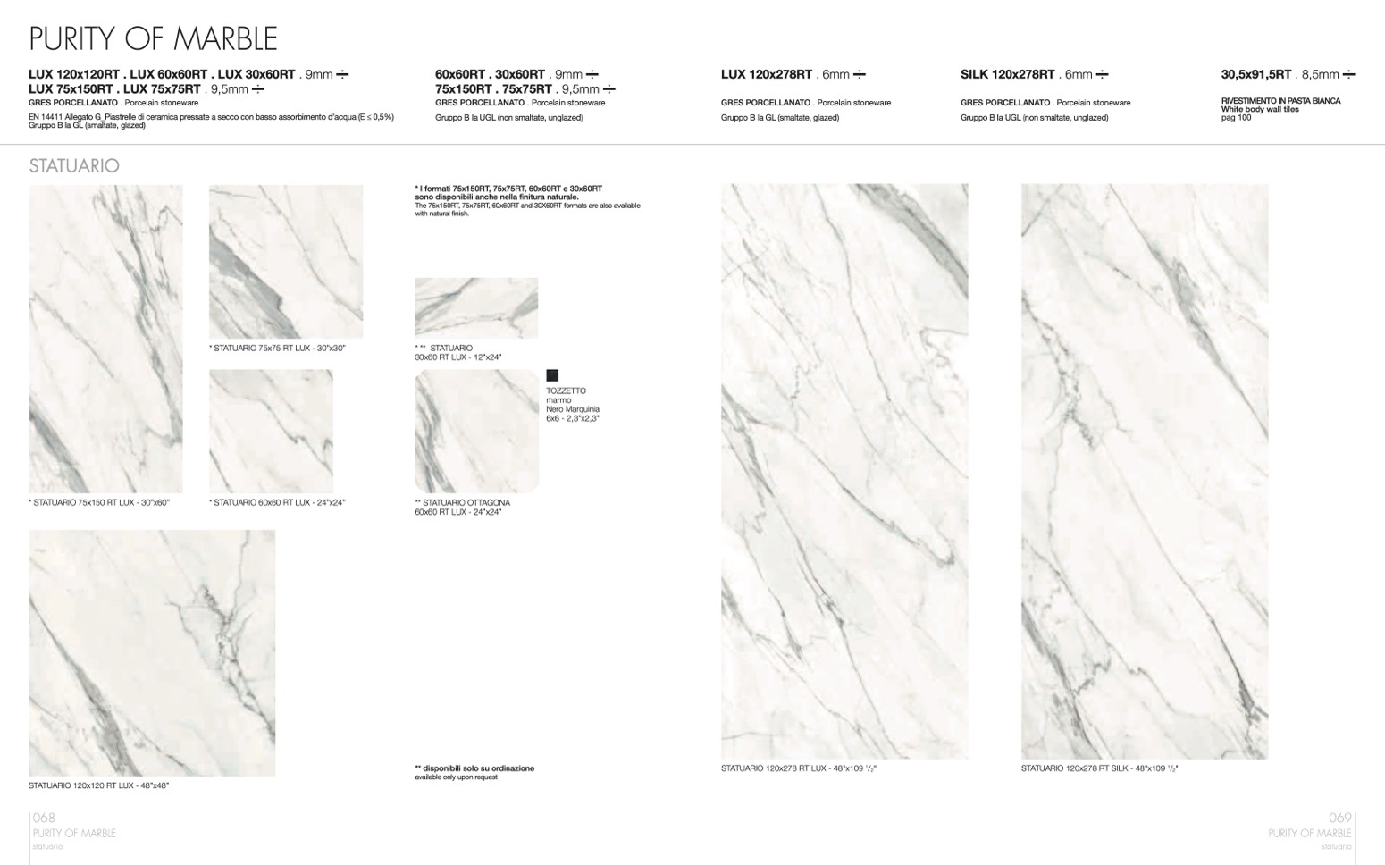 * STATUARIO 75x75 RT LUX - 30”x30”
