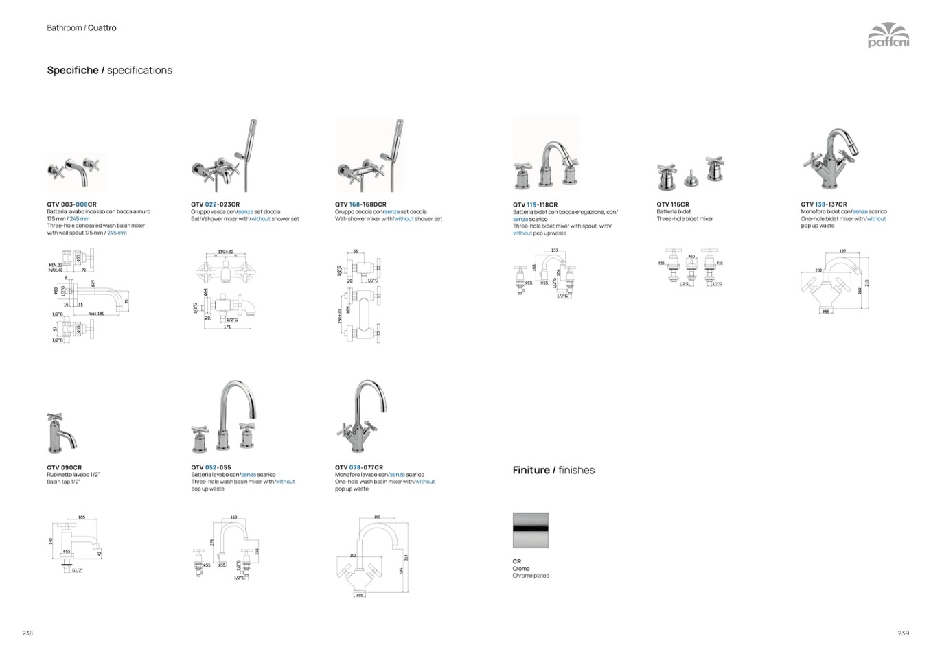 Batteria lavabo con/senza scarico