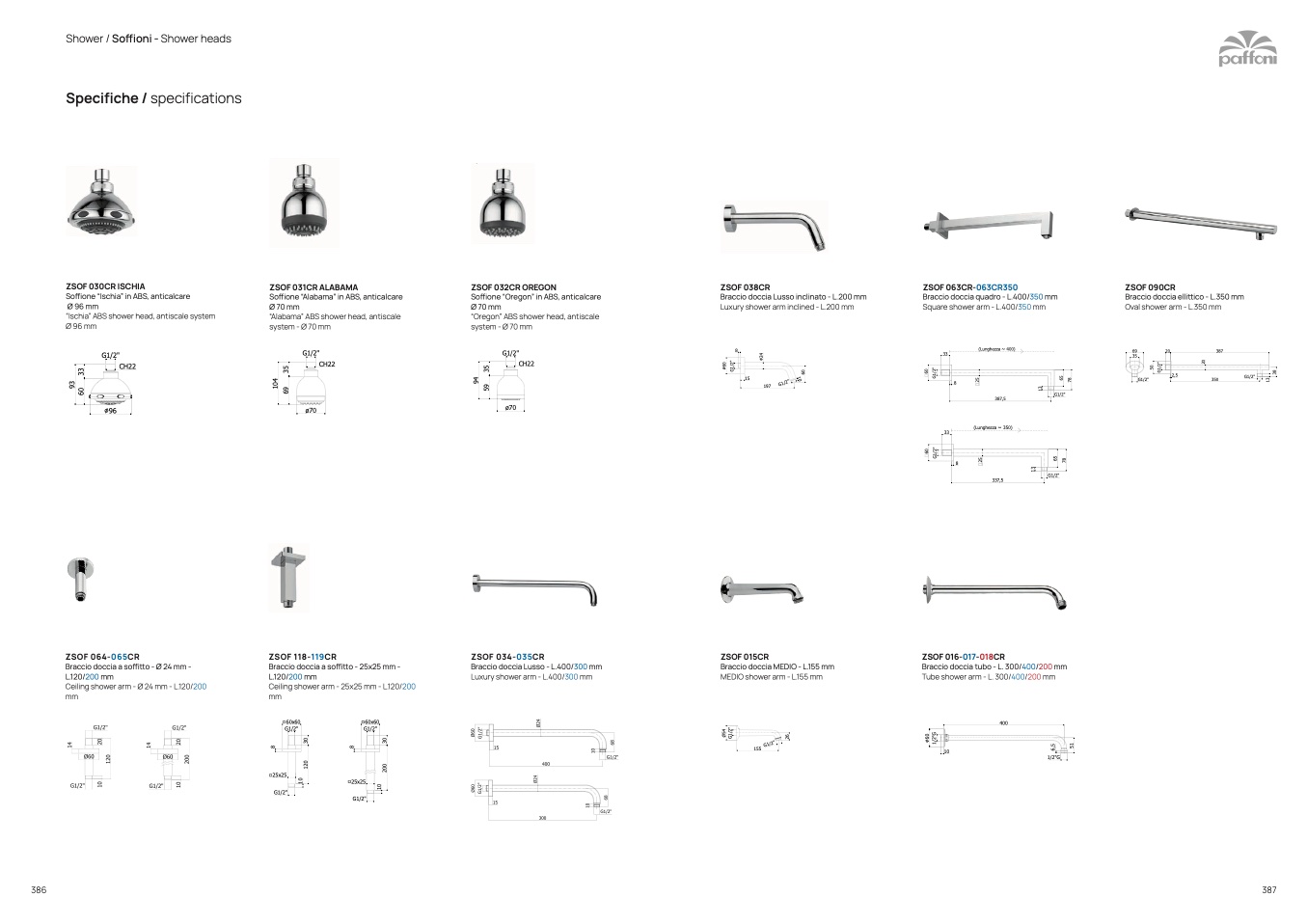 Braccio doccia Lusso - L.400/300 mm
