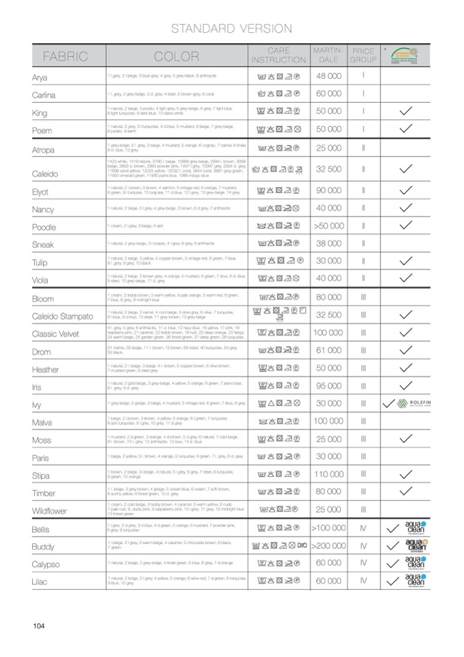 1 natural, 2 beige, 3 potato, 4 light grey, 5 grey-beige, 6 grey, 7 light blue,