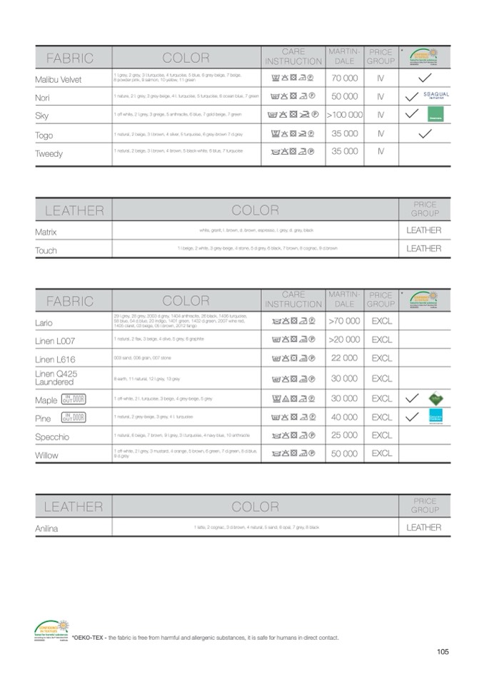 *OEKO-TEX - the fabric is free from harmful and allergenic substances, it is safe for humans in direct contact.