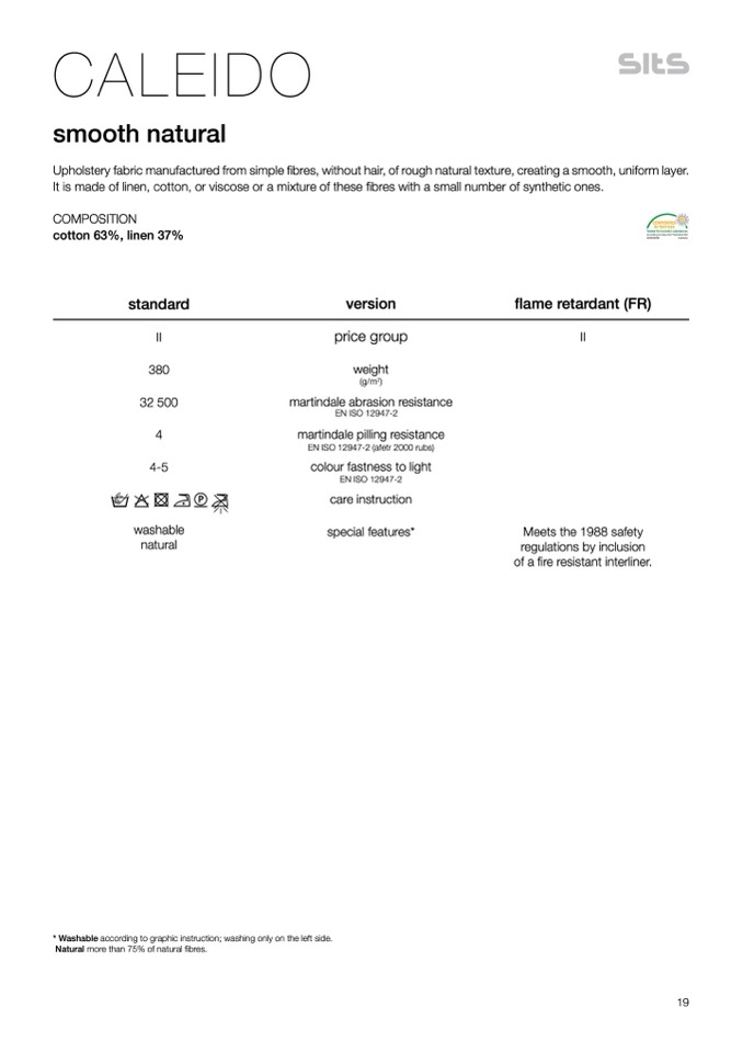 Natural more than 75% of natural fibres.