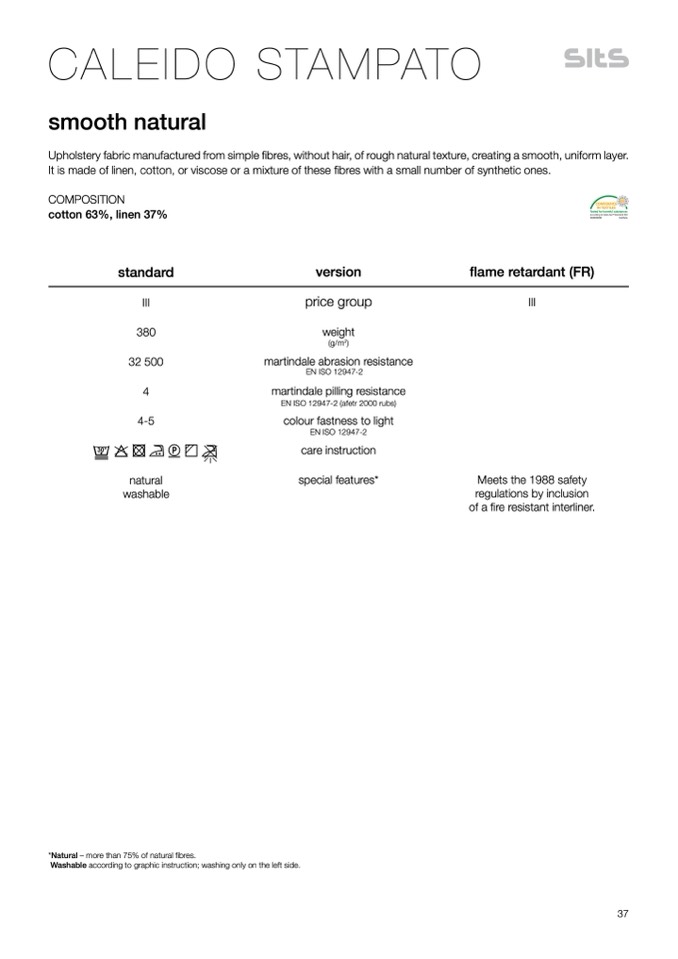 Upholstery fabric manufactured from simple fibres, without hair, of rough natural texture, creating a smooth, uniform layer.