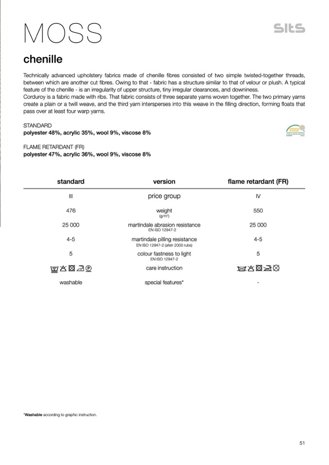 *Washable according to graphic instruction.