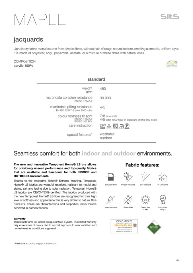 Home® LS fabrics are water/oil repellent, resistant to mould and