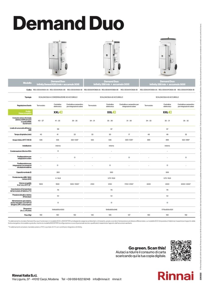 *In abbinamento al solare Demand Duo può funzionare in modalità ECO o BOOSTER, privilegiando esigenze ambientali o di impianto, grazie a sonde di temperatura ad altezza differenziata. La modalità ECO (impostata di fabbrica) massimizza l'apporto della