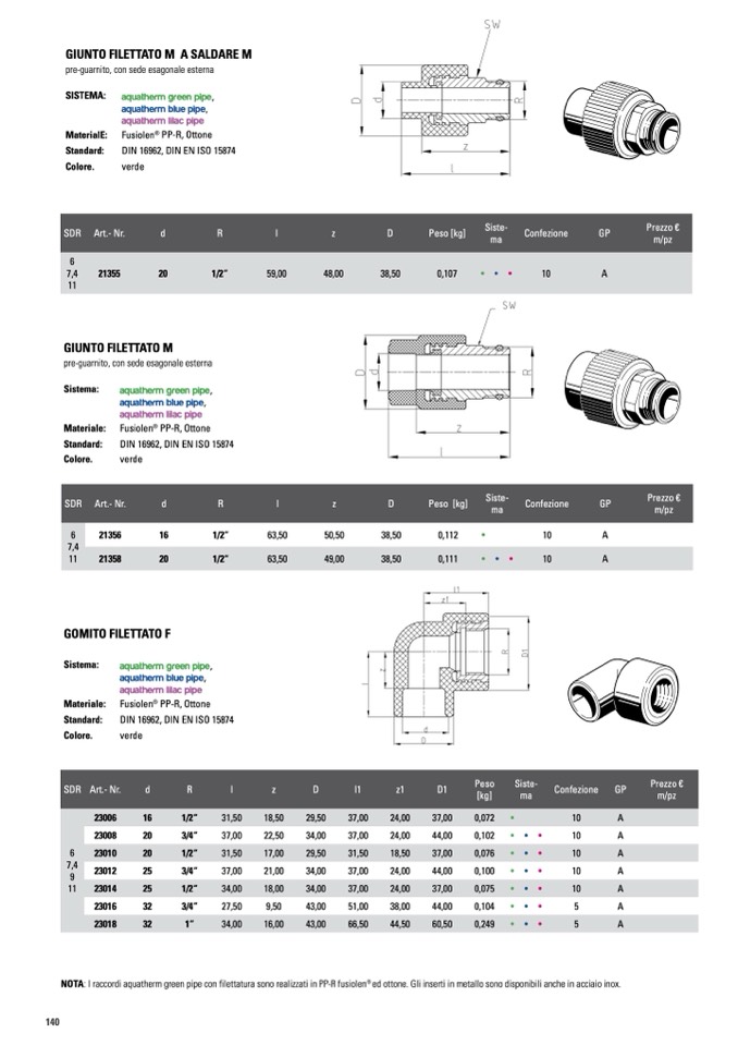 NOTA: I raccordi aquatherm green pipe con filettatura sono realizzati in PP-R fusiolen