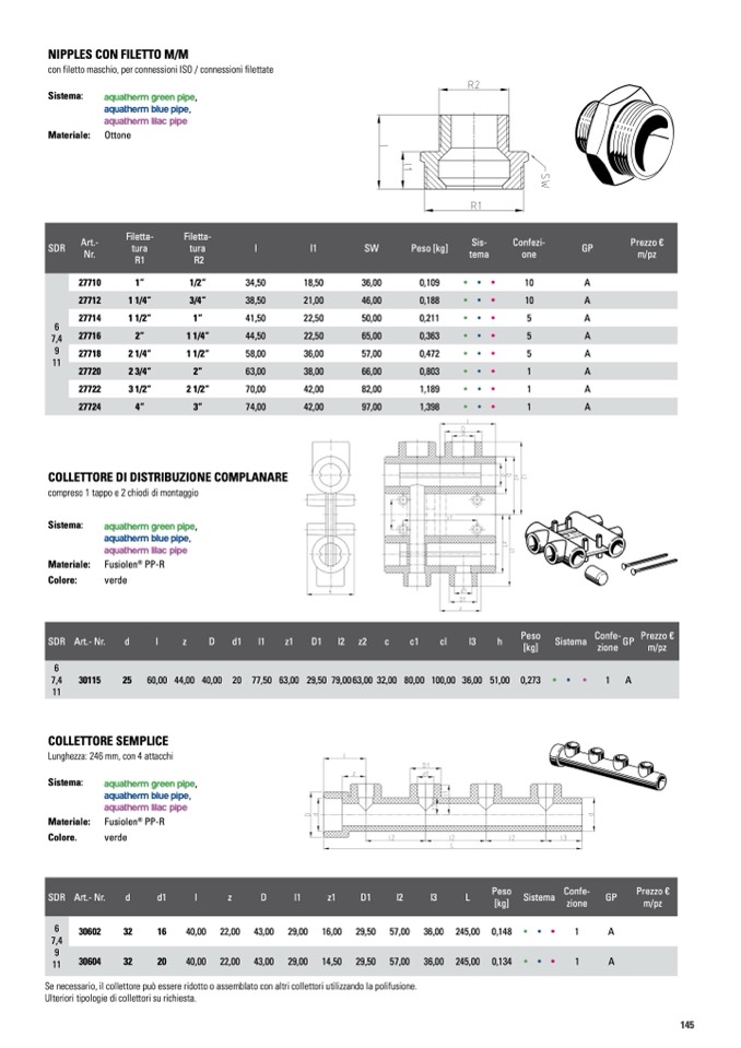 Se necessario, il collettore può essere ridotto o assemblato con altri collettori utilizzando la polifusione.